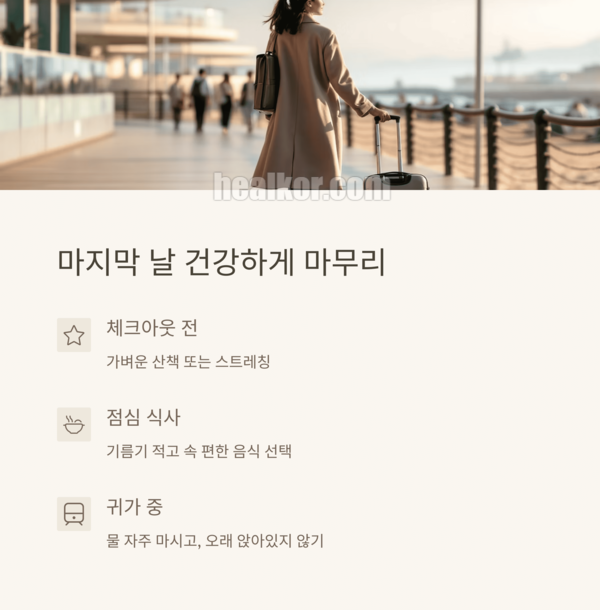 - 체크아웃 전 가벼운 산책 또는 스트레칭